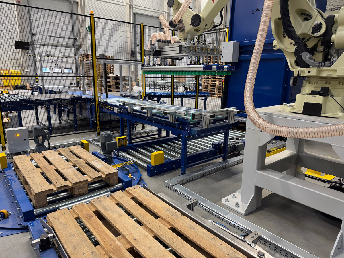 - pełną integrację z robotami paletyzującymi i depaletyzującymi,